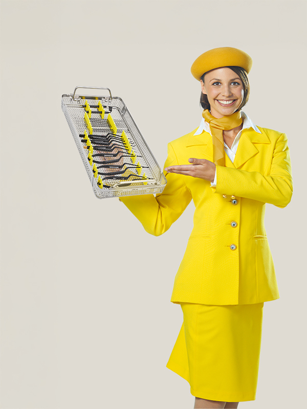 Von hier nach da! Wertvolle chirurgische Instrumente müssen heutzutage viel erledigen. Mit unserem Organisationssystem für die Sterilgutversorgung können Sie Ihren Instrumenten eine wohlverdiente Pause gönnen. Verwenden Sie die schonenden Elemente aus latexfreiem Silikon, um die empfindlichen Instrumente aufzunehmen und während aller Operationen sicher zu lagern. Das vielseitige System aus Beschlaghaltern, Klemmen und Gittermatten ist exakt auf die Aesculap-Siebe zugeschnitten. Und vor allem können Sie diese für Ihre tägliche Arbeit nutzen. Aesculap InOS® ist überraschend praktisch, praxisnah und erfrischend gelb.