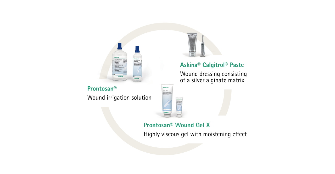 B. Braun bietet verschiedene Produkte an, die die Prävention von Biofilm und Wundinfektionen unterstützen, die Wundheilung fördern und dazu beitragen, die Lebensqualität des Patienten zu erhalten. Je schneller die Wundheilung voranschreitet, desto besser ist das langfristige ästhetische und funktionelle Ergebnis Ihres Patienten.