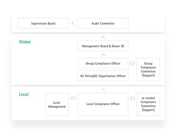 Die B. Braun Gesellschaften nehmen Compliance als Managementaufgabe wahr, unterstützt durch eine integrierte Berichterstattung. Das Management muss sich dazu regelmäßig mit dem zuständigen (stellvertretenden) Compliance Officer abstimmen, der hierzu – soweit erforderlich – das Group Compliance Office einbezieht.